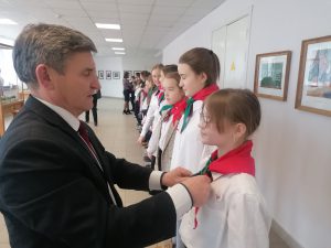 8 февраля 2024 года на базе музея «Учебная книга в истории образования» государственного учреждения образования «Академия образования» состоялась торжественная церемония принятия в пионеры учащихся государственного учреждения образования «Гимназия № 75
