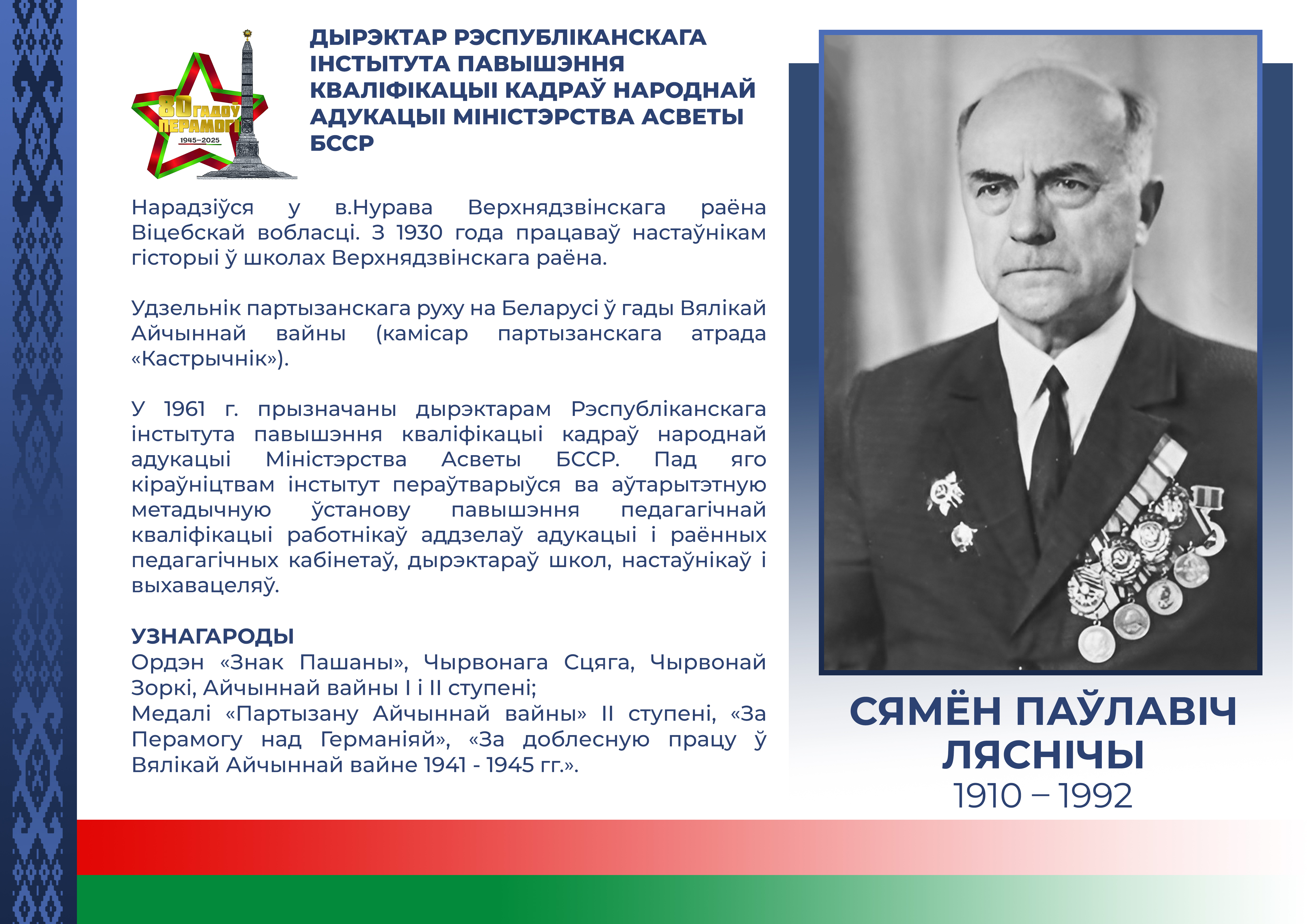 20 чэрвеня на базе музея «Вучэбная кніга ў гісторыі адукацыі» Акадэміі адукацыі адбылося адкрыццё выставы да 80-годдзя Перамогі савецкага народа ў Вялікай Айчыннай вайне. Яна прысвечана памяці ўдзельнікаў Вялікай Айчыннай вайны: педагогаў, навукоўцаў, метадыстаў, аўтараў падручнікаў. Запрашаем наведаць выставу на 4 паверсе Акадэміі адукацыі альбо на старонцы музея.